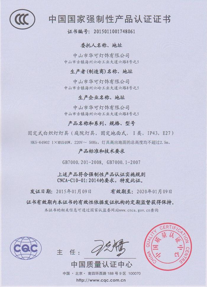 華可3C認證證書