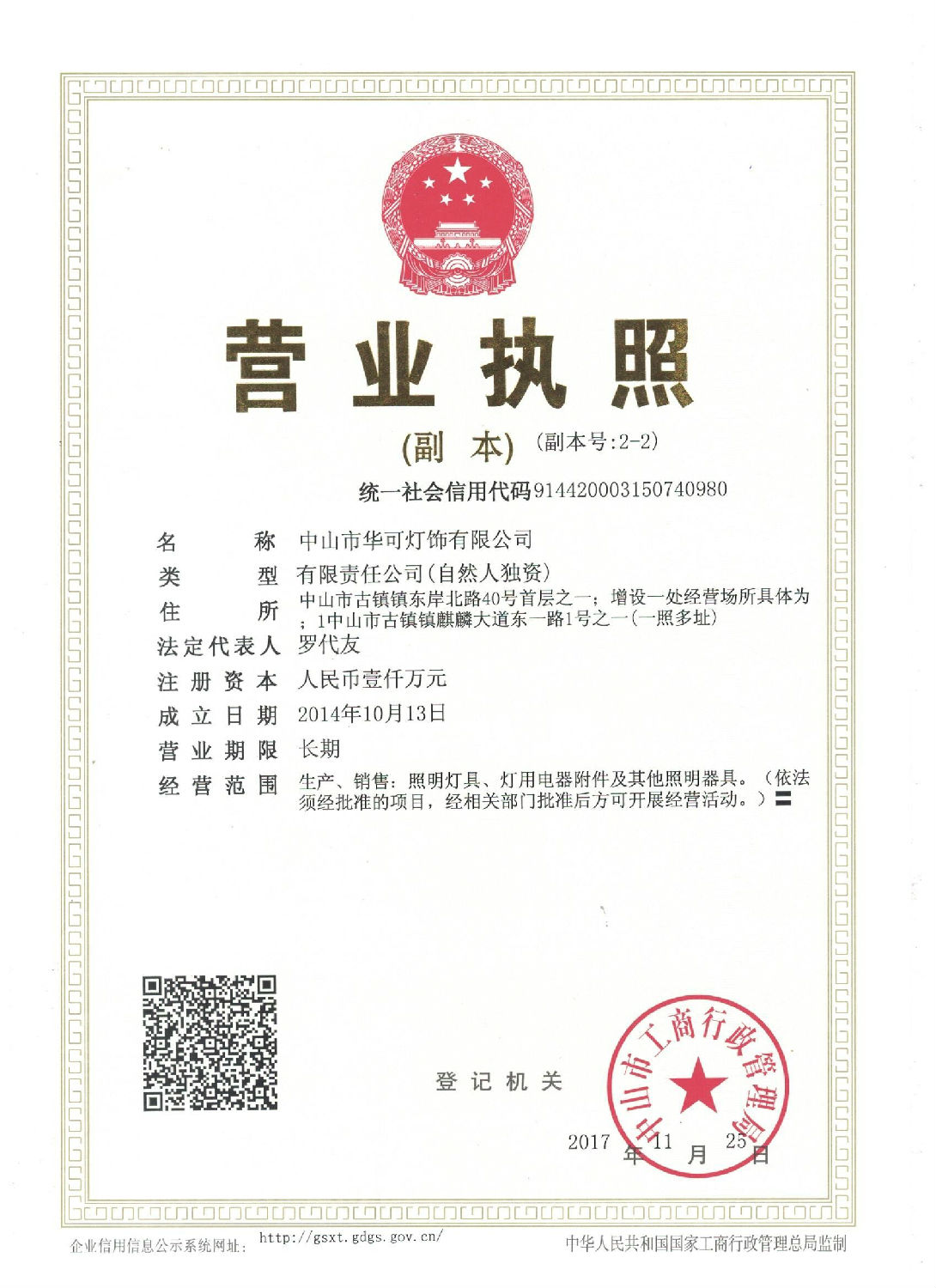 華可燈飾營業執照